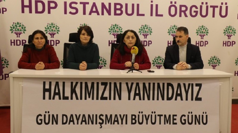 HDK, HDP, TJA, DBP ve Birleşik Mücadele Güçleri (BMG) Gemlik yürüyüşünün deprem nedeniyle ertelenmesine dair HDP İstanbul il binasında basın toplantısı gerçekleştirdi. “Halkımızın yanındayız gün dayanışmayı büyütme günü” pankartının asıldığı toplantıda açıklamayı HDP İstanbul Eş Başkanı İlknur Birol yaptı.