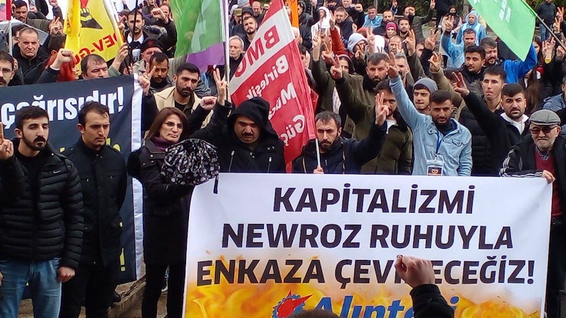 Newroz alanına Alınteri okurları “Kapitalizmi Newroz ruhuyla enkaza çevireceğiz”, pankartıyla yerini aldı. Alınteri pankartına yurtsever gençler yoğun ilgi gösterdi.