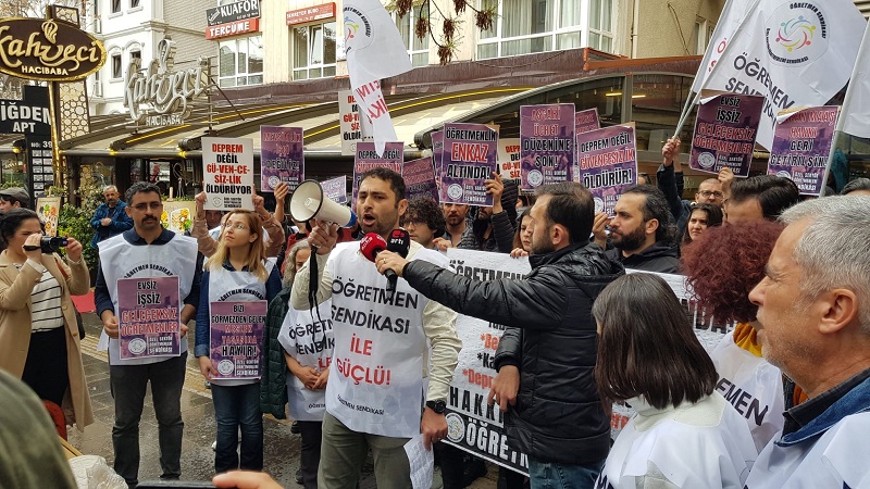 Millî Eğitim Bakanlığı’nın (MEB) haftalardır görüşme taleplerine yanıt vermediği Özel Sektör Öğretmenleri Sendikası, bunun üzerine #ÖğretmenlikEnkazAltında diyerek Ankara’da toplandı. Depremzede öğretmenlerin mağduriyetlerinin giderilmesi başta olmak üzere, taban maaş ve tüm özlük haklarının tanınması gibi taleplerle Ankara Güvenpark’ta buluşan öğretmenler, MEB önünde eylem yapacaklarını belirtince bakanlık görüşme talebini kabul etmek zorunda kaldı.