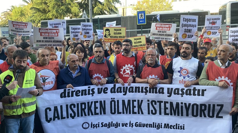 Basın açıklamasında Enerji Sen’den Ozan Erbaş, İSİG Meclisi temsilcisi Serpil Ünal, Birleşik Taşımacılık Sendikası Genel Başkanı Murat Oral yaptıkları kısa konuşmalarda güvencesiz-taşeron çalışma sisteminin iş cinayetlerinin esas nedenlerinden biri olduğunu vurguladı. Kuralsız güvencesiz çalışmaya, maliyet hesaplarıyla basit önlemlerin bile alınmadığı denetimsizliğe karşıörgütlü mücadele çağrısı yapıldı.