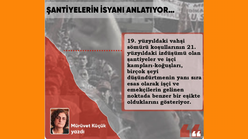 19. yüzyıldaki vahşi sömürü koşullarının 21. yüzyıldaki izdüşümü olan şantiyeler ve işçi kampları-koğuşları, birçok şeyi düşündürtmenin yanı sıra esas olarak işçi ve emekçilerin gelinen noktada benzer bir eşikte olduklarını gösteriyor. O eşik, örgütlülüğü fiili meşru mücadeleyle iç içe geçirerek büyütme zorunluluğu ve bunun için aslında işçiler cephesinde nasıl bir zeminin olduğudur.