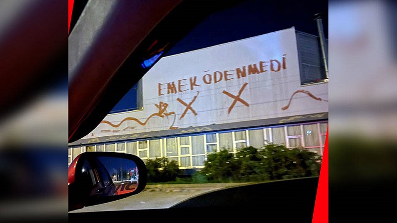 Bu onur kırıcı ve gaspçı tutuma karşı işçinin de bir onuru ve itiraz etme hakkının bulunduğunu göstermek için boyadığı salonun dış duvarlarına kırmızı boyayla “Emek ödenmedi” diye yazdı.