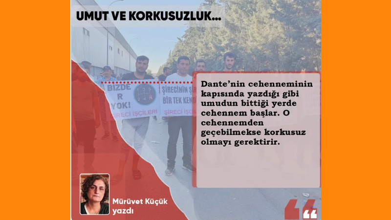 Ki, böyle bir “umut” da zaten umut değildir, varacağı son nokta da insanı bir balçık gibi içine çeken umutsuzluktur. Cehenneminin kapısında yazdığı gibi, “umudun bittiği yerde cehennem başlar”. O cehennemden geçebilmekse korkusuz olmayı gerektirir.