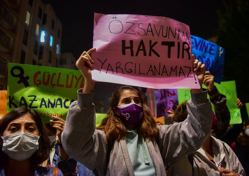 Ölmemek için öldüren kadınlar söz konusu olduğunda “öz savunma” dikkate alınmaz. Duruşmalarda ‘takım elbiseliydi’, ‘sakin ve efendice bir görünümü vardı’, ‘namusumu temizledim diye savunma yaptı’ denilerek serbest bırakılan erkeklerden farklı olarak sistematik şiddet gören kadınlar tıkıldıkları evlerde yaşadıkları işkenceye boyun eğmeyip “özsavunma”ya başvurdukları için dört duvar arasına tıkılarak ömür boyu cezalandırılmaya çalışılıyor.