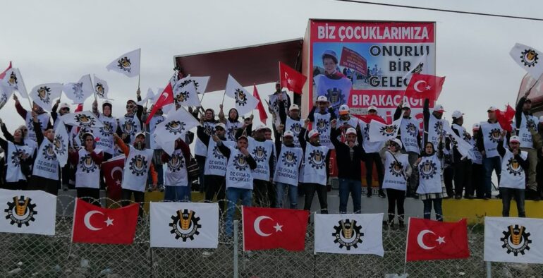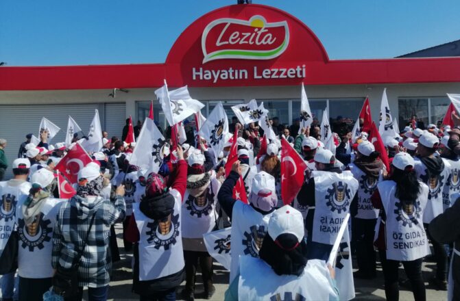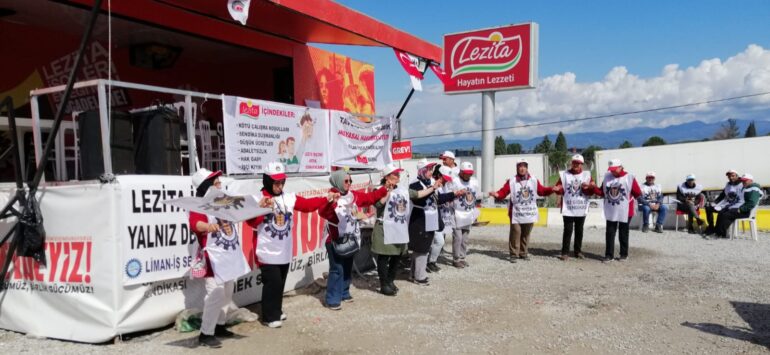 Biz Lezita’yı 2022’deki direniş sürecinden hatırlıyoruz. Yaklaşık 40 işçi, işyerindeki kötü çalışma koşullarına karşı Öz Gıda-İş Sendikası’na üye oldukları için işten atılmış ve iki aya yakın fabrika önünde direnişe devam etmişti.[1] İşten atılan işçilerin hukuki süreçleri sürerken, fabrikadaki örgütlenme çalışmaları da devam etti. Mahkeme sonucunda sendikanın yetkili olduğu kararı çıktı fakat patron toplu sözleşme masasına oturmayı reddetti ve sendikalı işçilere türlü baskılar yaptı. En sonunda Lezita işçileri 7 Mart günü greve çıktılar.