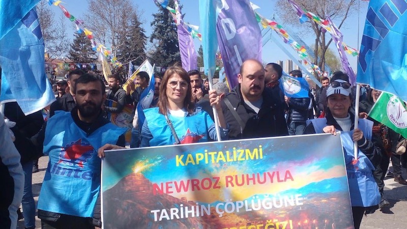 Ankara’da Newroz kutlaması binlerce kişinin katılımıyla son yılların en kalabalık ve coşkulu Newroz’u olarak geçti. Newroz alanında kadınların ve gençlerin yoğun kitlesel katılımı dikkat çekiciydi. Alınteri “Newroz ruhuyla kapitalizmi tarihin çöplüğüne göndereceğiz!” pankartıyla Newroz alanında yerini aldı.