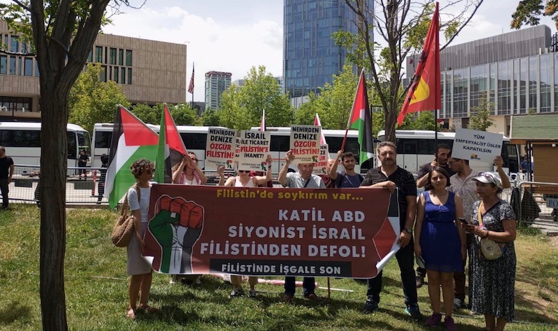 Filistin’de İşgale Son Platformu bileşenleri saat 14:00’de Ankara’daki ABD Büyükelçiliği önünde bir araya gelerek basın açıklaması gerçekleştirdi.
