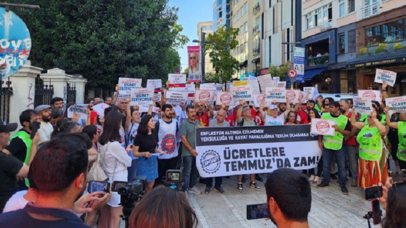Enerji, özel eğitim kurumları, inşaat, market, taşımacılık, tekstil, depo, metal sektöründe sendikalarımızla her işyerinde ‘temmuzda zam şart’ mücadelemizi, emeğimizi sömüren patronlara, vergi yükleri ve zamlarla hayatımızı daha da zorlaştıran hükümetin ekonomi programına karşı sürdürmeye devam edeceğiz. Açlık sınırının altında asgari ücreti kabul etmiyoruz. Temmuzda zam şart demeyi sürdürüyoruz. Büyük zenginliği var edenler emekçiler, bu zenginlikten payını alan patronlar olamaz. Tüm toplumsal zenginlikleri üretenler işçi, emekçiler olurken, servetleri bizden çaldıkları olan patronların sömürü düzenine dur diyoruz. Emekçilerin ücretlerine zam talebinin yerine getirilmesini yineliyoruz. İnsanca yaşamaya yetecek ücret istiyoruz”.