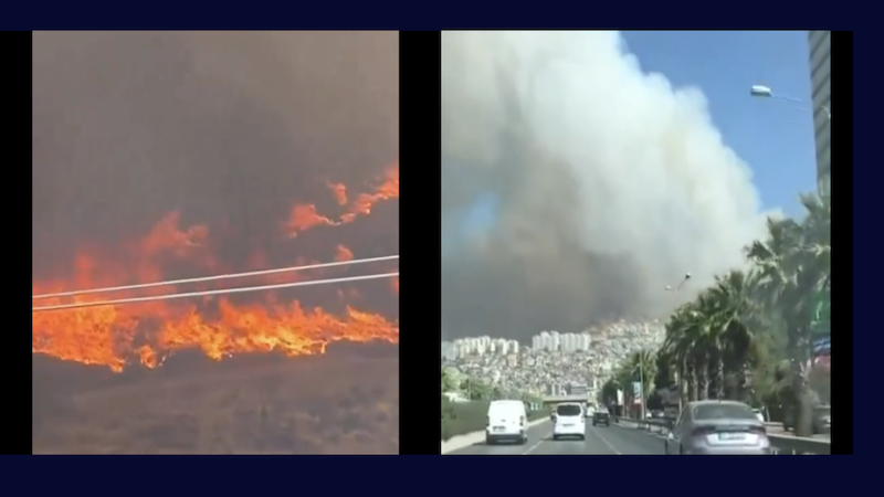 Dün (Cuma günü) İzmir Karşıyaka’nın dağlık kesiminde başlayan orman yangını 15. saatte kent sınırına dayanınca alarm zilleri çaldı. Yangına yakın yerlerdeki insanlar ellerinde kovalarla yangına müdahale ederken itfaiye ekipleri nereye yetişeceklerini bilmeden dalmış ateşin içine.