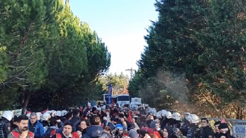 Bugün saat 09:00’da fabrika önünden başlayacak yürüyüşte karşılarına polis ordusu dikildi. İşçiler yürüyüşte kararlı olduklarını haykırınca da saldırı başladı.