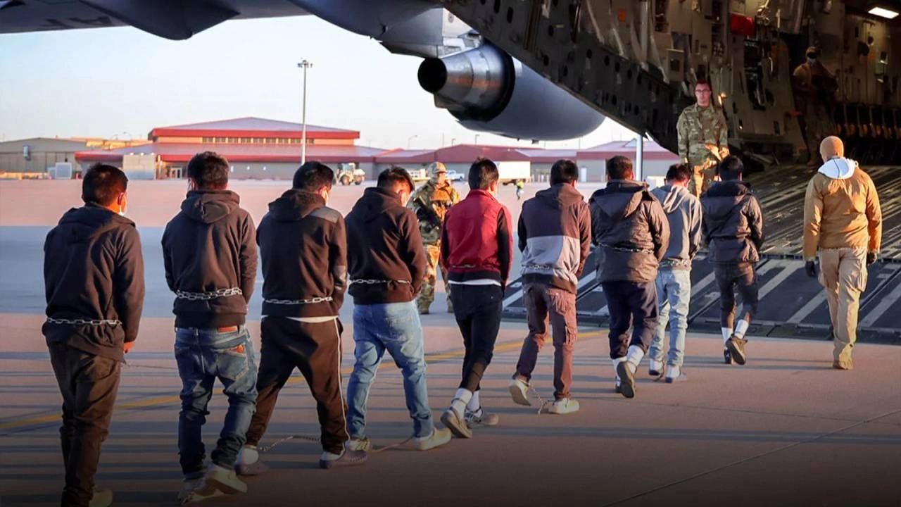 ABD “demokrasisinin” geldiği noktayı da gösteren bu ibretlik görüntü Beyaz Saray tarafından, “Sınırdışı etme uçuşları başladı” ifadesiyle paylaşıldı ve “Başkan Trump, verdiği sözleri tutuyor: ABD’ye yasadışı yollardan girenler ciddi sonuçlarla karşılaşacak” açıklaması yapıldı.