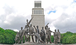 Ve nihayet büyük bir alanın orta yerine inşa edilmiş, direnişin tunçtan heykeliyle yüz yüze geliyorsunuz. Hiçbir açıklama gerekmiyor, tarih bilinci ve gelecek perspektifi, sanatın o evrensel diliyle işliyor beyninize: Yumrukları havada, ellerinde silahları 10 adam ve bir çocuğun isyanını ve örgütlü gücünü içtiğiniz yüz ifadeleri, umudunu sosyalizme bağlamış ve onun için savaşanların dinginliğiyle dikiliveriyor karşınıza. “Durmak yok, teslim olmak, geri çekilmek yok!” diyerek yola devam edenlerin kararlılığı var gözlerde. 12 sene boyunca dişle tırnakla örülen mücadele ve direnişin son neferleri belki onlar, ne var ki “…dizlerde titreme yok!” Sovyet orduları Berlin’e, Amerikan orduları Almanya içlerine ilerlerken 500 kişi ölüm yürüyüşü kararı alıyor. Yürüyüşü sadece 53’ü tamamlamış da olsa onlar komünist ve antifaşist tutsaklar nezdinde tüm ilerici dünya halkları için yürüdüklerinin bilincindeler. Kayın ormanının neredeyse her köşesinde sık makilerin düzenli sıraları arasında kurşuna dizildikleri plaketlerle haykırılan Sovyet, Alman, Fransız, İngiliz, Yunan… tutsakların hedefine yürüdüler.