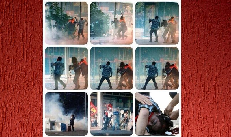 Ethem’in başından kurşunlanarak yere yuvarlandığı o sahne zihnime kazındı. O dönemi yaşayan istisnasız herkesin benzer duygularla dolu olduğunu tahmin etmek zor değil. 25-30 kişilik bir grubun en önlerinde çatışan bu heybetli beden, mavi kareli gömlek, boynundaki kırmızı fular… Hepsi yerde, hareketsizdi şimdi. Bir belgesel çekimindeymiş gibi bütün kareler yerli yerine oturuyordu.