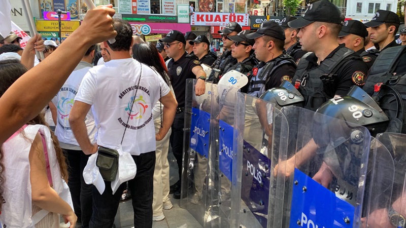 Özel Sektör Öğretmenleri Sendikası’nın (Öğretmen Sendikası) taban maaş uygulaması, belirsiz süreli sözleşme, kamuda çalışan öğretmenlerle eşit ücret ve işkolu olarak tanınmaları talepleriyle 7 gün önce İstanbul’dan başlattığı yürüyüş bugün Ankara’da Meclis’e yürüyüşle tamamlanacaktı. Öğretmenleri sendika binası önünde bekleyen siyasi partiler, kurumlar ve milletvekilleri polis ablukasına alınırken; Ankara yürüyüşçüsü ekibin Kurtuluş Parkı’ndan sendika binasına yürümesi önleri Ziya Gökalp Caddesi’nde kesilerek engellenmek istendi. Öğretmenler geri adım atmayınca polis saldırısıyla gözaltına alındı.
