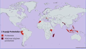 – Yaklaşık üç hafta önce Fas’ta başlayan eylemler de ‘Z kuşağı eylemi’ olarak değerlendiriliyor. Çeşitli kentlerde ‘sosyal adalet, eğitim ve sağlıkta reform ile yolsuzlukla mücadele’ talepleriyle başlayan gösteriler kısa sürede ülke geneline yayıldı. Kamu hizmetlerinde aksaklıklar sürerken ülkenin bir yandan dev bütçelerle FİFA 2030 Dünya Kupası gibi uluslararası spor organizasyonlarına hazırlanıyor oluşu tepki çekti.