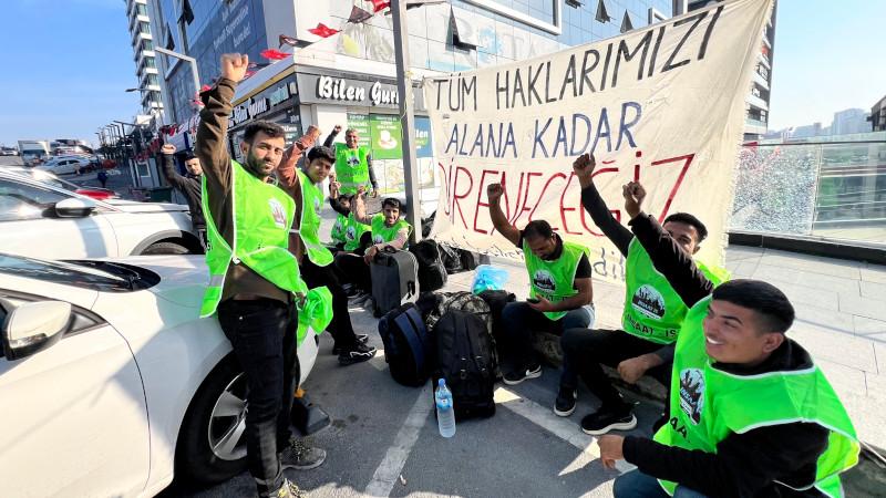 Yüklenici firmanın ofisinin bulunduğu Rota Office önüne “Tüm haklarımızı alana kadar direneceğiz” pankartı asan içiler, “Haklarımızı almak için buradayız. Bizi üç aydır vaatlerle kandırdılar. Burada son kuruşu alana kadar direneceğiz. Buradan bir yere ayrılmayacağız” dedi.