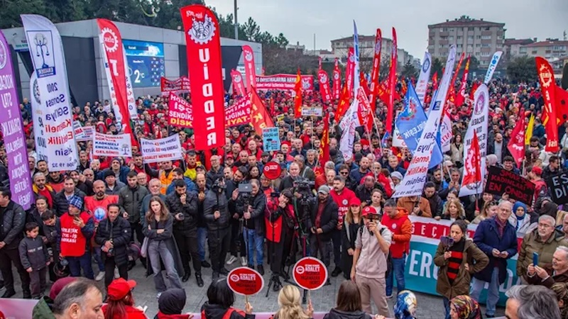 Trafo Meydanı’ndan başlayıp Gebze Kent Meydan’da biten ve mitinge dönüşen yürüyüşe, onlarca sendika ve yüzlerce sektörlerden işçi katılarak geçim krizi, vergi adaletsizliği ve iş cinayetlerine karşı tepkisini dile getirdi.