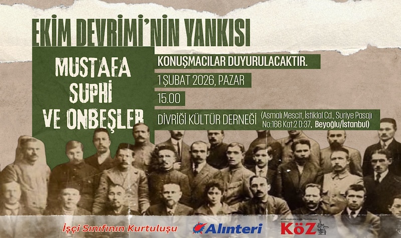 Alınteri, İşçi Sınıfının Kurtuluşu ve KöZ olarak “Ekim Devriminin Yankısı: Mustafa Suphi ve Onbeşler” başlıklı paneli böyle bir bilinçle beraber örgütlüyoruz.