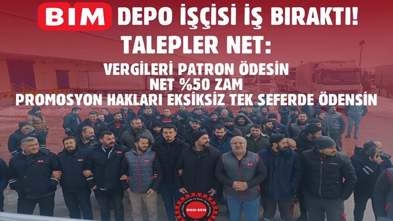 Migros depo işçilerinin asgari ücrete yapılan yüzde 27’lik zammın sadece yüzde 1 fazlası oranında ücret artışı yapılmasına karşı başlatıp hızla yayılarak birçok kente ve depoya taşınan direnişleri şimdi BİM’e ait depoları da içine aldı. Migros depo işçilerinin direnişi güvencesizliğe, sarı sendika dayatmasına, vergi kesintilerine ve banka promosyonlarının tam ödenmesine kadar genişleyen taleplerle devam ederken BİM depolarından ilk ses Van’dan geldi.