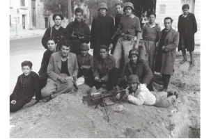 Fotoğraf: 1944 yılının Aralık ayında, “Dekemvriana” olarak adlandırılan ve ELAS ile İngiltere’nin askerî ve istihbarî desteğini alan hükümet kuvvetleri arasında yaşanan çatışmalar sırasında Kesaryani’deki ELAS güçleri