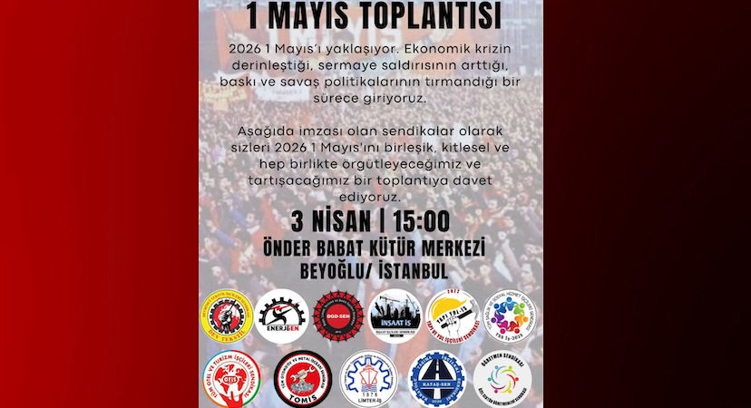 1 Mayıs yaklaşırken hazırlıklar da yoğunlaştı. Ekonomik krizin derinleştiği, sermayenin saldırılarnın işçi ve emekçiler üzerinde tırmandığı, baskı ve savaş politikalarının tavan yaptığı bir kesitte Mücadeleci sendikalar kitlesel ve birleşik bir 1 Mayısı birlikte örgütlemek için 3 Nisan’da yapılacak toplantı için emek dostu tüm çevrelere çağrı yaptı.