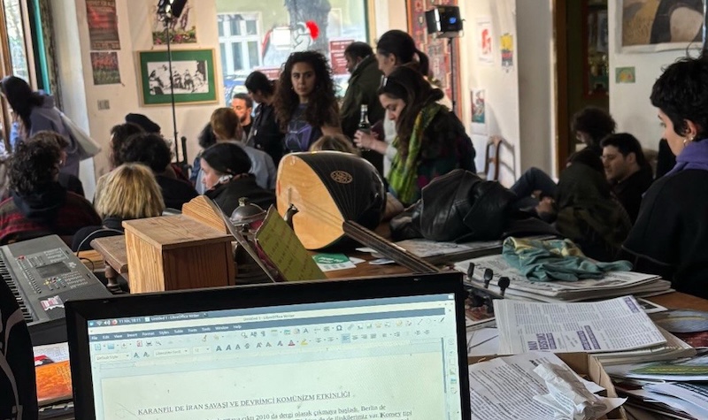 Mülteci, göçmen ya da buradaki antikapitalist aktivistlerin buluşma mekânı olan Karanfil Cafe’de, İran’a karşı başlatılan savaşla ilgili bir panel gerçekleştirildi. Emperyalist saldırganlık ve savaşa karşı tutum üzerine sunum ve tartışmalar yapıldı. Bu paneli İran kökenli Manjenigh (Mancınık) adlı bir grup organize etti. Grubun bakışı esas olarak devrimci hareketin ilkesel perspektifine uygundu. Emperyalist saldırı ve haksız savaş karşısında işçi sınıfının ve emekçi halkların çıkarına uygun olarak konumlanmak, iç savaşa çevirip sosyalist devrim perspektifiyle mücadeleyi yükseltmek esas alınmalıdır.