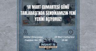 İnşaat İşçileri Sendikası, Taksim/Tarlabaşı’ndaki yeni mekânlarını 14 Mart Cumartesi günü açacaklarını duyurdu