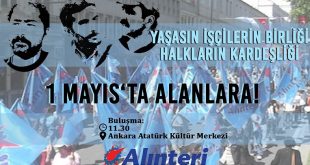 İşçi ve emekçileri, dostlarımızı Ankara'da 1 Mayıs'ta Alınteri saflarında yürümeye davet ediyoruz