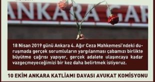 10 Ekim Ankara Katliamı'nın 18 Nisan'da görülecek firari sanıklarla ilgili davasının 2. duruşmasına çağrı yapan avukatlar "Gerçek sorumluların yargılanması çabamızı büyütelim" dedi.