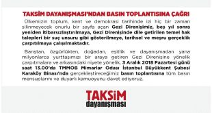 Taksim Dayanışması basın açıklamasına çağırıyor