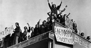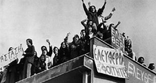 Yunanistan’da 1973 yılında öğrenci gençliğin faşist “Albaylar Cuntası”na karşı başlattığı Politeknik işgali: “Halkların katili emperyalizme ne su ne toprak” sloganıyla bilinir. Bugün de o günkü kadar güncel
