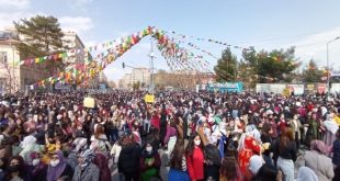 DAKP öncülüğünde 8 Mart mitinginin gerçekleştirildiği İstasyon Meydanı’na ulusal kıyafetleriyle akın eden kadınlar, sloganlarla taleplerini dile getiriyor.