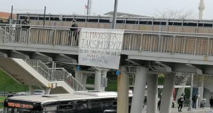 DİSK Dev Turizm-İş Marmara Şubesi, Limter-İş ve İnşaat-İş E5’teki Okmeydanı Köprüsü’ne astıkları ortak imzalı pankartla 1 Mayıs’ta Taksim’de olacaklarını belirttiler
