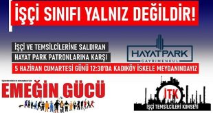 Emeğin Gücü Derneği, dernek temsilcilerinin ve hakları gasbedilen işçilerin Hayat Park Gayrimenkul sorumluları ve mafyalaşmış beslemelerinin saldırısına uğramasına karşı yarın Kadıköy’de yapılacak basın açıklamasına katılım çağrısında bulundu