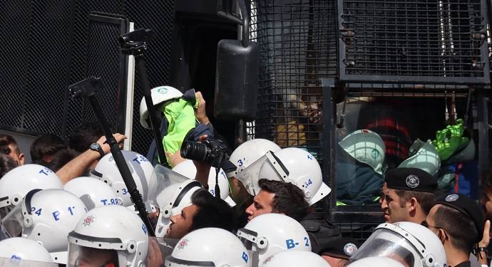 İFM Merkez Bankası şantiyesinde çalışan İnşaat-İş ve Dev Yapı-İş üyelerinin haklarının Limak ve FBK firmaları tarafından gasbedilmesine karşı başlayan direnişte dün olduğu gibi bugün de gözaltı yapıldı. İşçiler hem dünkü saldırıya karşı basın açıklaması yapmak hem de direnişi ikinci gününde sürdürmek üzere daha bir araya gelmeden gerçekleşen saldırıda 11 kişi işkenceyle gözaltına alındı. Gözaltılar polis ifadelerinin ardından serbest bırakıldı