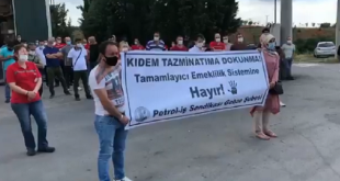 Petrol-İş, Gebze’de örgütlü olduğu tüm fabrikaların bahçesinde yaptığı yürüyüş ve basın açıklamalarıyla işçi sınıfının iş güvencesi anlamına da gelen kıdem tazminatının gasbedilmesine seyirci kalmayacağını vurguladı.