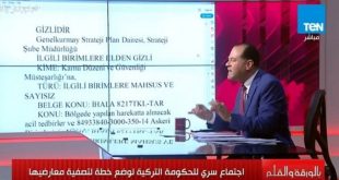Devamını Oku »Mısır ulusal TV kanallarından TEN TV ele geçirdiği bir belge ile MİT ve Türkiye’nin farklı istihbarat teşkilatlarının Türkiye Kürdistanı ve Suriye Kürdistanı’nda yaşayan halka uygulamayı planladığı soykırım politikasını deşifre etti
