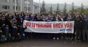 Kocaeli’nde Petrol-İş’in örgütlü olduğu Shell dolum tesisinde çalışan 101 işçiyi ilgilendiren toplu sözleşmede patron yüzde 25 gibi bir zam teklif etti. Krizin emekçiler açısından ciddi bir yıkım yarattığı, TÜİK’in bile yıllık enflasyonu yüzde 48,87 olarak açıkladığı bu koşullarda yüzde 50 oranında zam isteyen işçiler, iş bırakarak tepki gösterdi