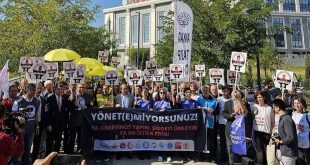 TTB’nin de aralarında olduğu 11 sağlık emek-meslek örgütü ile tabip odaları, sağlıkta şiddete karşı yürütülen mücadele kapsamında “Yönet(e)miyorsunuz! Hekimler, Sağlık Emekçileri Değil; Bu Enkazın Sorumluları Gidecek!” demek için Sağlık Bakanlığı önünde bir basın açıklaması düzenledi.