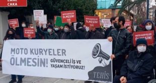 Pandemi dönemi ile birlikte motokuryelerin iş yükünün arttığını, son bir yıl içerisinde 191 kuryenin yaşamını yitirdiğini vurgulamak için bir araya gelen Turizm Eğlence ve Hizmet İşçileri Sendikası (TEHİS) üyeleri, "Moto kuryeler ölmesin, güvenceli iş ve yaşam istiyoruz" pankartı açtı.
