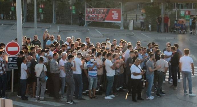 Migros Depo işçisi Mazlum Aslan: “Grev yaptığımız için içerideki kapıları kapattılar. Arkadaşlarımızın servise binmesini engelliyorlar. Ellerinden geldiği kadar zorbalık yapıyorlar”