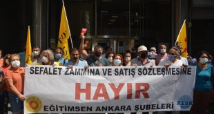 Kamu-Sen ve Memur-Sen'in imzaladığı satış sözleşmesini kabul etmeyen, buna karşı günlerdir grev çağrısı yapan KESK'e bağlı sendikalar Türkiye'nin birçok yerinde iş bıraktı: “Sefalet zammına ve satış sözleşmesine hayır!”