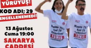 Devamını Oku »#YürüyüşKodAdı29 Ankara Sakarya Caddesi’nde basın açıklamasına çağrı